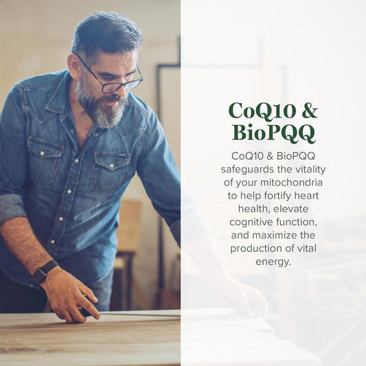 Organic Shilajit CoQ10 & BioPQQ: Heart & Brain Health Antioxidant Support - Energy Optimizer for Men & Women - 150mg, 60 CapsulesVendor:Global Healing CenterRegular price $122.32 AUDRegular priceUnit price / per-