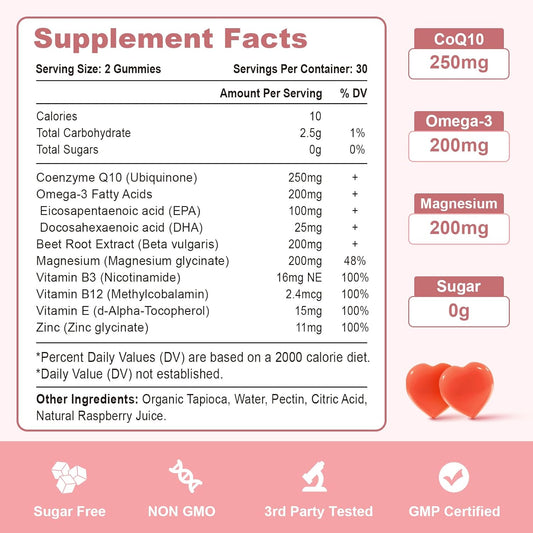 Raspberry Flavored CoQ10 Gummies with Omega-3 and Vitamin B3 for Energy and Antioxidant Support - 60 CountVendor:VazatisiRegular price $100.00 AUDRegular priceUnit price / per-