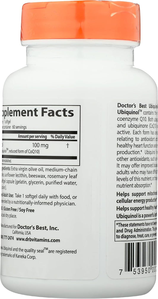 Doctors Best Ubiquinol 100mg, Coenzyme Q10, Non-GMO, Gluten & Soy Free, 60 Softgels for Heart Health and Energy SupportVendor:Doctor's BESTRegular price $135.04 AUDRegular priceUnit price / per-