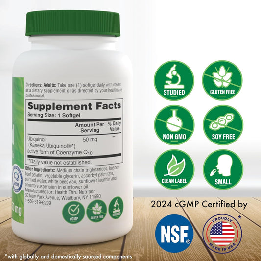 Health Thru Nutrition Ubiquinol 50mg (270 Softgels) with Kaneka QH CoQ-10 | 3-Pack | Cardiovascular & Mitochondria Support