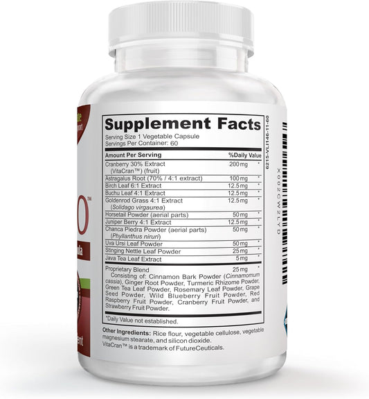 Kidney Cleanse and UTI Support Supplement with Cranberry Extract and Stinging Nettle Root - Promotes Healthy Kidneys and Bladder Health - Made in the USA by a Veteran Owned Company