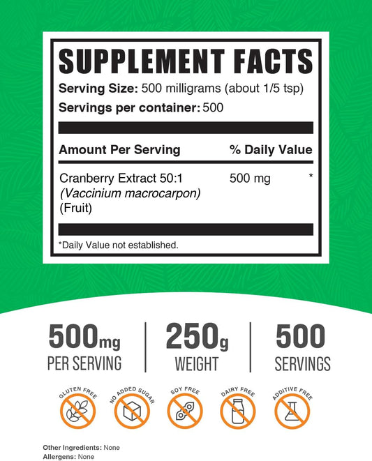Cranberry Extract Powder for Women & Men - 500mg per Serving, Vegan & Gluten Free - 250g (8.8 oz) (1 Pack)