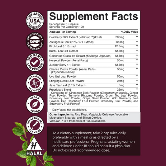 High Strength Kidney Cleanse & Detox Supplement with Cranberry for Women & Men - Supports Bladder Health - Non-GMO Vegan Formula