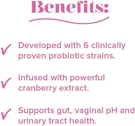 Vegan Vaginal Probiotic with Cranberry Extract and Chicory Root for pH Balance and Urinary Tract Health - 30 Capsules