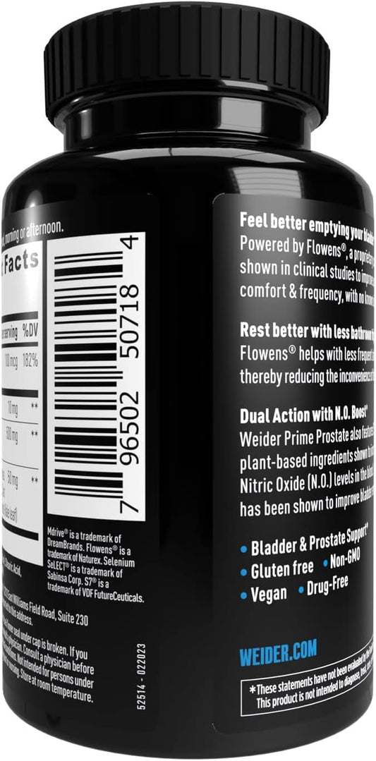Weider Prime Dual Action Prostate Health Supplement for Men - Supports Urinary Flow and Frequency, 60 Capsules
