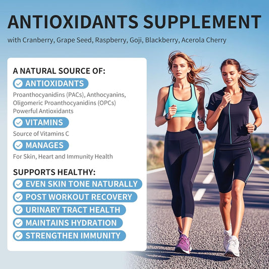 Antioxidant Supplement for Women - Supports Urinary Tract Health, Immune System, and Skin Brightening - Cranberry, Grape Seed, Raspberry, Goji, BlackBerry, Acerola Cherry - 60 Capsules