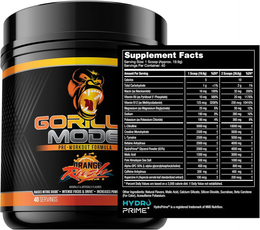 Orange Rush Gorilla Mind Pre Workout + Creatine Stack (100 Servings) - Enhance Strength, Power, and Muscle Size