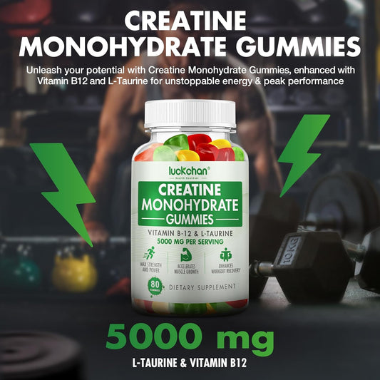 LUCKCHAN Creatine Gummies 5000mg - Muscle Strength & Energy Boost Supplement for Men & Women - 160 Count Chewables for Pre-Workout