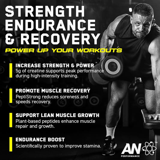 Unflavored AN Performance Creatine + Peptide - 5g Creatine Monohydrate, 2.4g PeptiStrong - Gluten-Free, Low Carb, Keto Friendly - 60 Servings