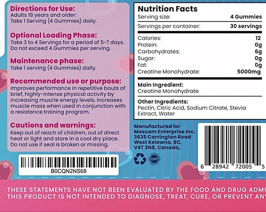 5g Creatine Monohydrate Gummies for Muscle Support and Energy Boost - Gluten-Free Strawberry Flavor - GMP Certified for Men and Women