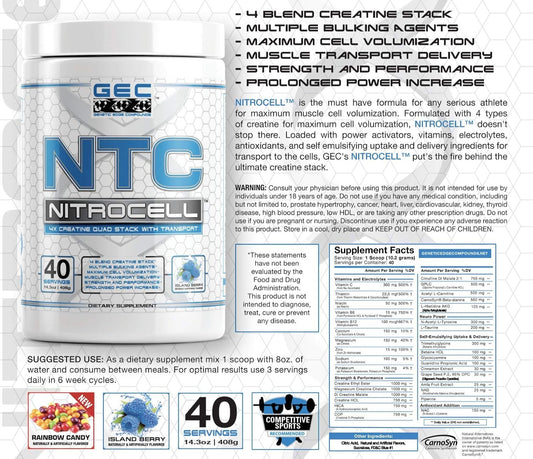 GEC NTC Nitrocell 4X Creatine Quad Pack - Boost Muscle Growth and Performance