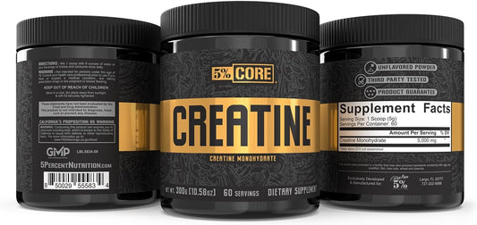 High-Quality 5% Nutrition Core Creatine Powder - 5G Micronized Monohydrate, 60 Servings - Unflavored Supplement