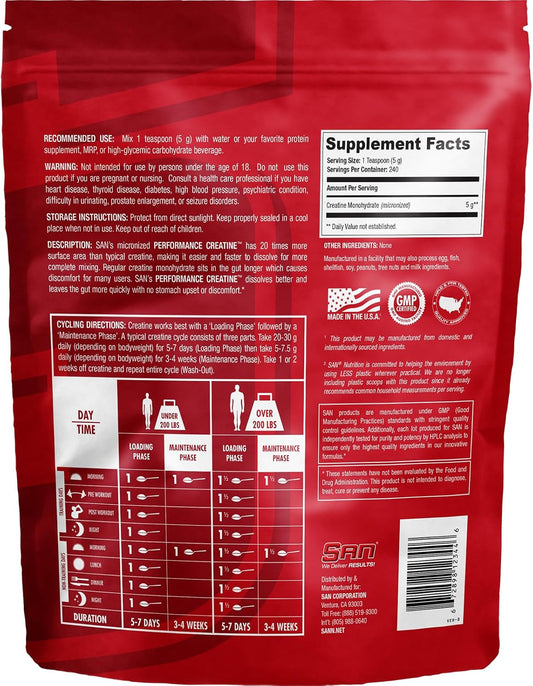 High-Quality SAN Performance Creatine Powder for Muscle Growth and Athletic Performance - 1200g, 240 Servings
