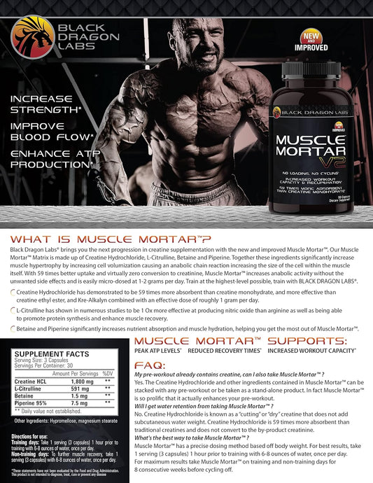 Black Dragon Labs Muscle Mortar Creatine HCL for Enhanced Strength & Endurance - 30 Servings
