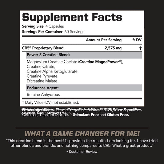 Powerful PMD Sports CR5 Creatine Complex Capsules - Enhance Recovery, Reduce Soreness, Build Lean Muscle Mass - 5 Blend Creatine Formula for Strength, Endurance (240 Caps)