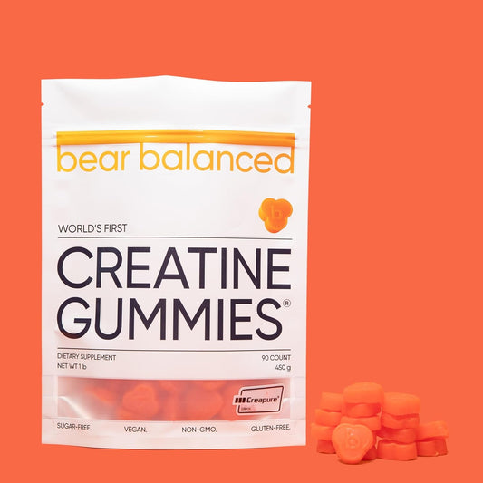 Bear Balanced Creatine Gummies with L-Theanine, L-Tyrosine, and B12 for Muscle Growth and Focus - Peach Mango Flavor - 2 Pack for Men and Women