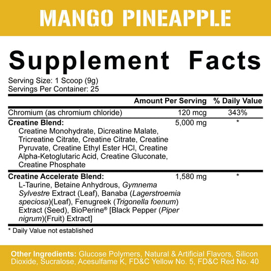 CreaTEN Creatine Complex Powder for Muscle Gain & Recovery - Mango Pineapple Flavor