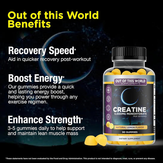 Premium USA-Made Creatine Monohydrate Gummies for Muscle Recovery, Strength, and Endurance - Lemon Flavor with Maximum Absorption