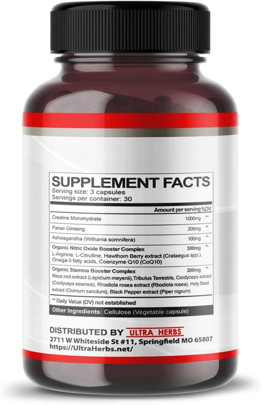 Ultra Herbs Creatine Monohydrate Capsules with L-Arginine, L Citrulline, and Ginseng for Stamina, Energy, and Muscle Growth - 90 Capsules