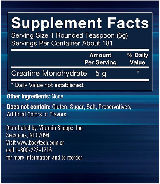 BodyTech Creatine Monohydrate Powder - Boost Strength, Performance, Recovery - Enhances Exercise Capacity for Fitness - 31.9 oz, 181 Servings