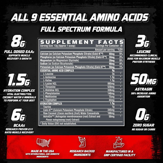 Nutrex Research EAA Hydration Fruit Punch & Creatine Monohydrate Powder - Ultimate Performance Supplement