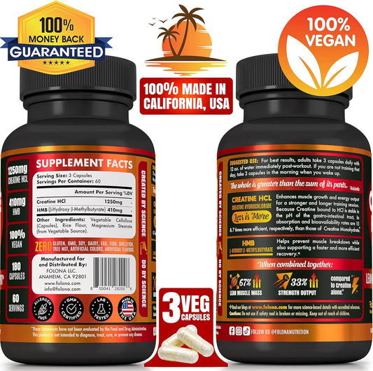 FOLONA Creatine HCL Capsules with HMB - Muscle Builder for Men & Women, Enhanced Endurance & Strength - 180 Vegan Capsules for Maximum Absorption & No BloatingVendor:FOLONARegular price $131.04 AUDRegular priceUnit price / per-