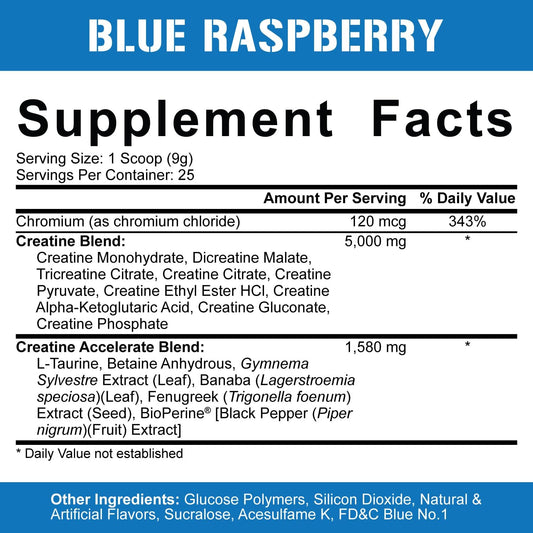 Blue Raspberry Flavored Creatine Powder with Accelerators for Muscle Gain & Recovery