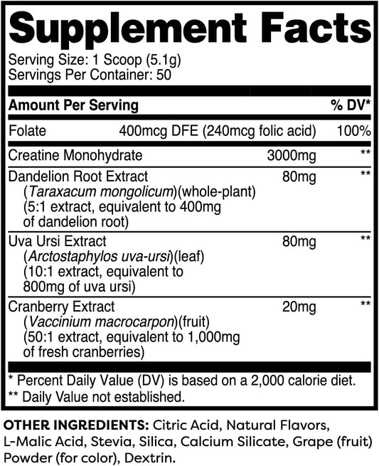 Blueberry Pomegranate Creatine Monohydrate with Dandelion & Uva Ursi - 50 Servings