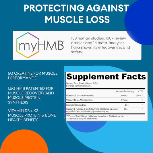 GLDN Creatine Monohydrate Powder with HMB, Vitamin D3, and K2 for Muscle and Bone Health