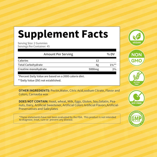 NOAVII Creatine Monohydrate Gummies 5000mg - Muscle Strength & Energy Boost - 90 Lemon Gummies