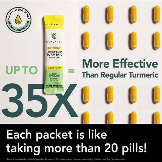 Nano Turmeric Curcumin Powder Packets with Natural Mango Flavor, 35X Stronger Supplement, Joint Relief and Immune Boost, Equivalent to 250+ Pills