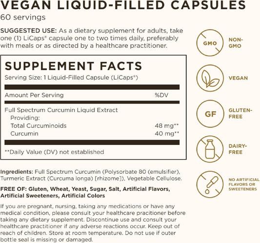 Solgar Full Spectrum Curcumin LiCaps for Brain, Joint, and Immune Health - Non-GMO, Vegan, Gluten Free