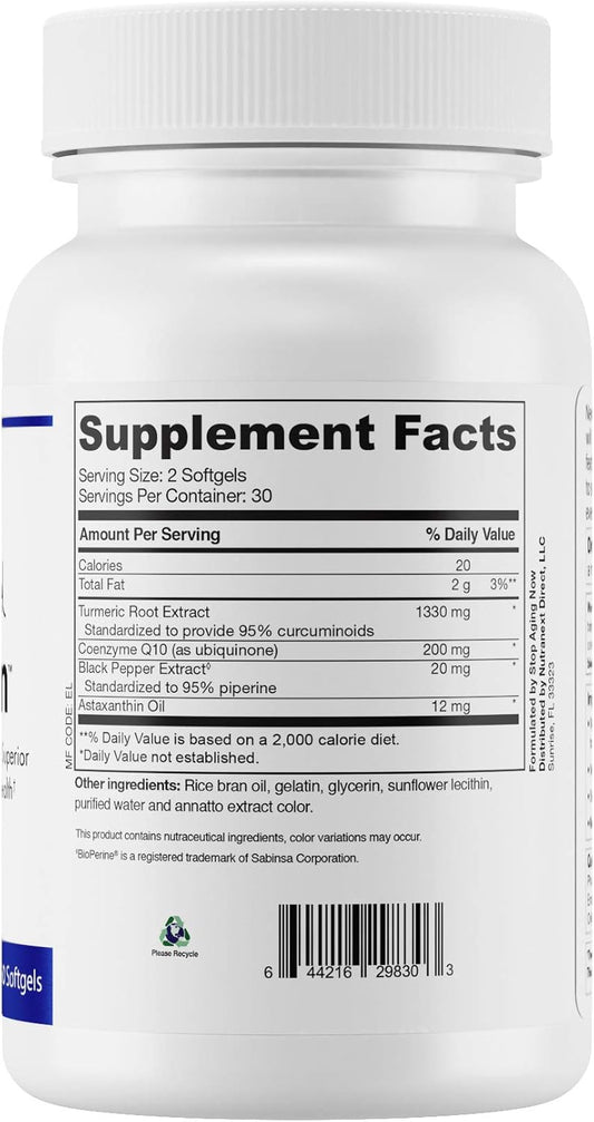 NextLevel Curcumin Complex with CoQ10 - Antioxidant Supplement for Heart, Brain, Joint & Skin - Turmeric Curcumin, Black Pepper, Astaxanthin - 60 Softgels