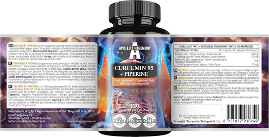 High Strength Curcumin 95 + Piperine Capsules, 302mg per Dose, 120 Vegan Capsules, 4 Month Supply