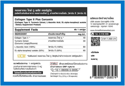 Amsel Collagen Type II and Curcumin Capsules - 30 Count