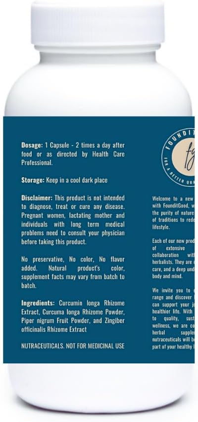 High Potency CPlusZ by FounditGood FiG Nutra: Curcumin with Black Pepper & Ginger - Joint & Metabolic Support - 60 Veg Caps