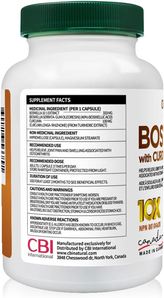 High Potency Boswellia & Curcumin Supplement - 120 Vegan Capsules, 10:1 Extract, 333mg Boswellia & 100mg Curcumin