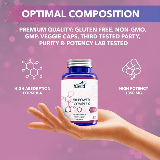 2-Pack Vital-J 4-IN-1 URI POWER COMPLEX 1350mg - D Mannose, Cranberry, Hibiscus, Dandelion Herb - Bladder & UTI Cleanse - 60 Day Supply