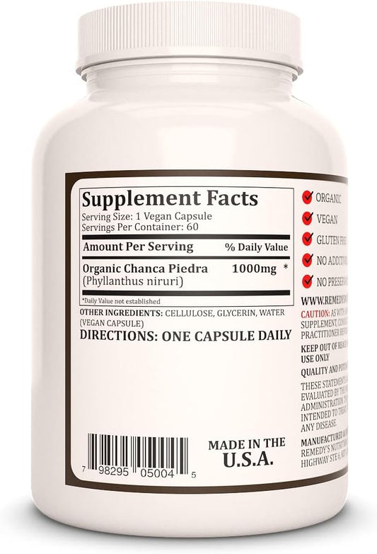 1000mg Chanca Piedra Herbal Dietary Supplement - 60 Vegan Capsules, Non-GMO, Gluten-Free, Dairy-Free, Two Month Supply