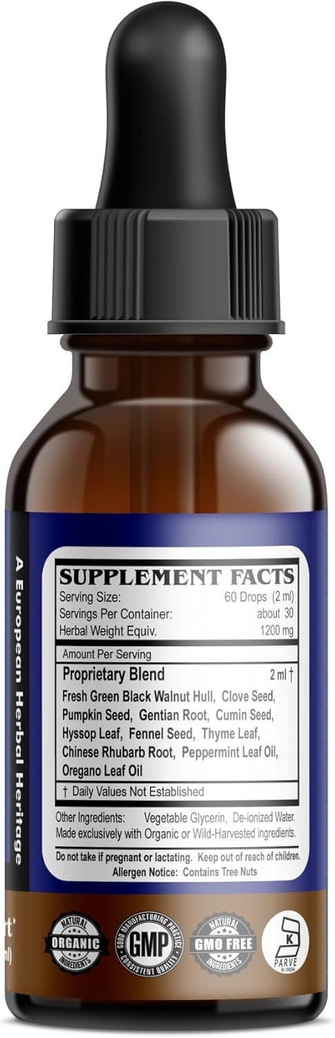 Certified Organic Intestinal Support and Microbial Cleanse Tincture - SUPTMAX Purify - 2 fl oz - No Wormwood - Humans and Pets