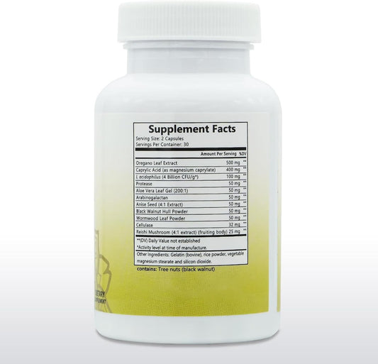 Gut Health Support Capsules with Oregano Leaf & Black Walnut - Herbal Digestive Supplement for Men & Women - Natural Wellness Blend with Wormwood & Caprylic Acid (60 Count)