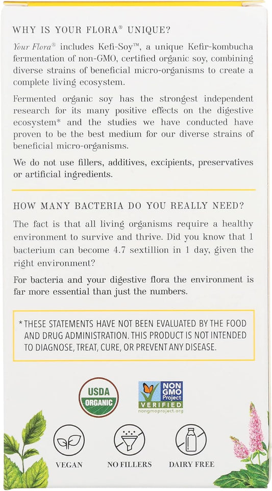 Non-GMO Probiotic Capsules with Fermented Soybean, Lemon Balm, & Peppermint for Gut Balance - Prebiotics, Postbiotics - 60 Daily Capsules