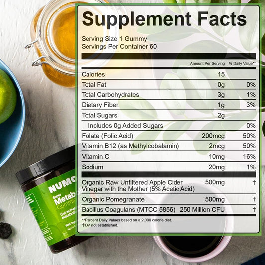 Organic Apple Cider Vinegar Gummies with MCT Oil - 3X Acetic Acid, Probiotics - Vegan, Non-GMO - 60 Count