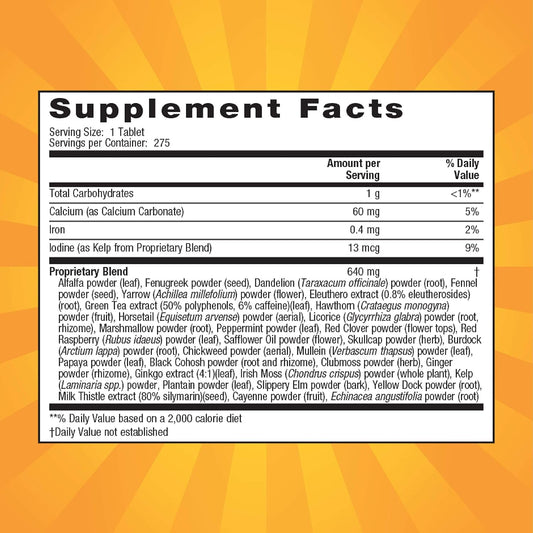 Digestion & Detox Support Tablets - Natural Blend for Healthy Digestive Function & Cleansing with Alfalfa, Dandelion, Fennel, Green Tea - 275 Count