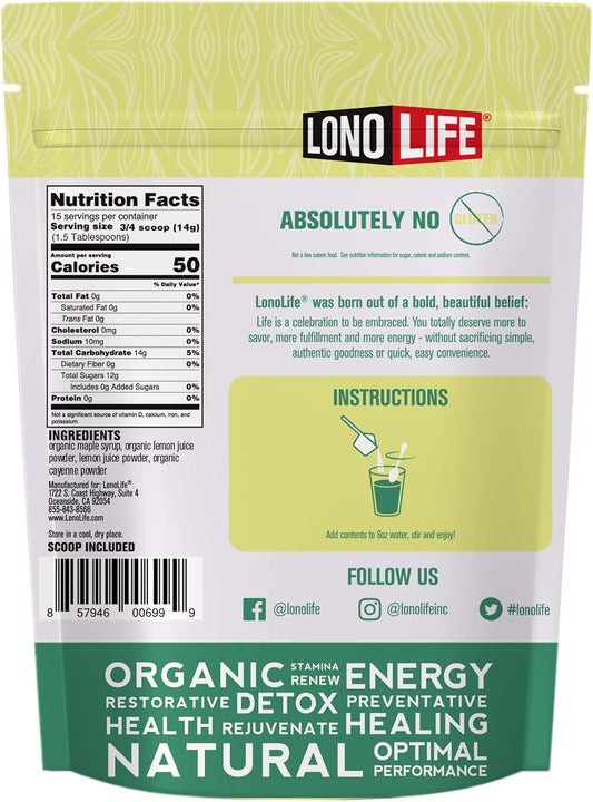 Organic Master Cleanse Lemonade Detox Powder - Gluten-Free Diet Mix - 8 oz Bulk Package - 15 Servings by LonoLife Cleanse Co