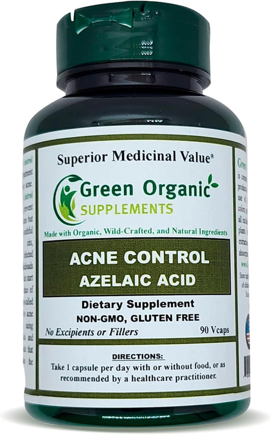 Pack of 4 Green Organic Acne Supplements with Azelaic Acid, 90 VCaps, High Absorption, Non-GMO, Gluten-Free