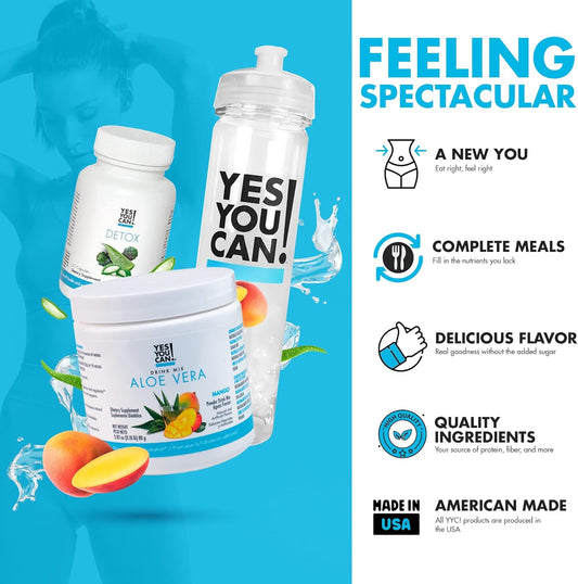 Detox Kit Bundle: YYC! Capsules, Aloe Vera Drink Mix, Water Bottle - Mango Flavor - Body Cleanse, Daily Cleanse, Hydration & Vitamins