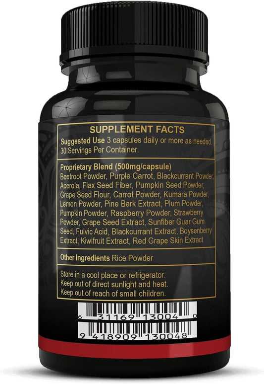 Super Reds Capsules with UAF1000+ for Energy & Antioxidants - 90 Capsules, New Zealand Red Superfood & Essential Veggies