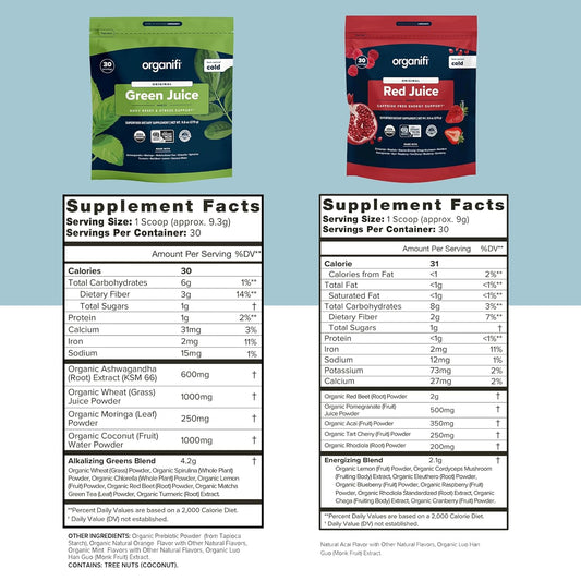 Organifi Green and Red Juice Bundle - 30 Day Supply of Organic Superfood Powder for Energy and Stress Relief - Antioxidant-Rich Formula, Non-GMO, Gluten-Free, Soy-Free