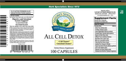 Natural Digestive System Supplement: Nature's Sunshine Cellular Detox Capsules (100 ct) - Kosher Herbal Blend for Healthy Bowel Movement
